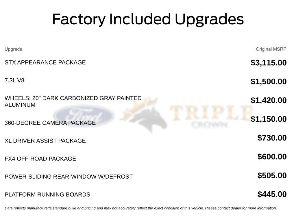 At Triple Crown Ford, we make truck buying easy with transparent pricing, a knowledgeable staff, and a no-pressure environment. We specialize in Super Duty trucks and are here to help you find the right one for your needs.