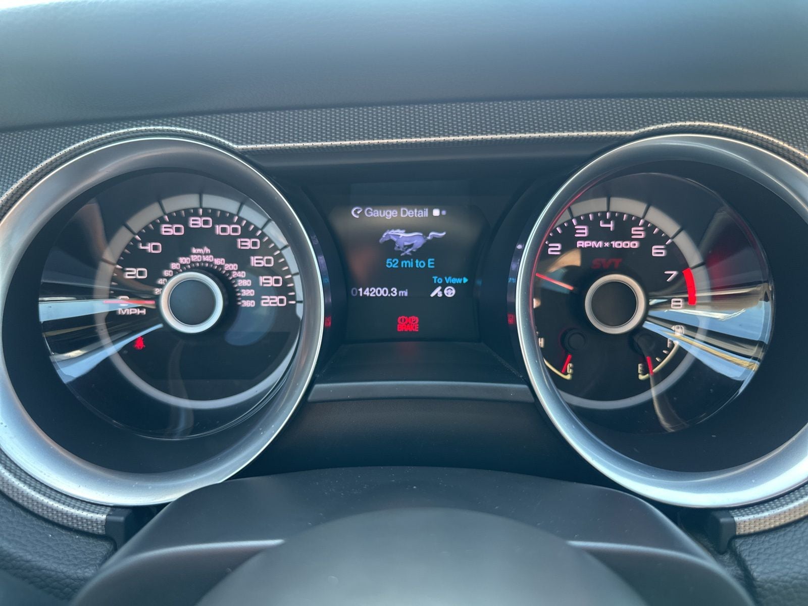 - Brushed aluminum accented 6-gauge instrument cluster -inc: message center, compass, SVT graphics