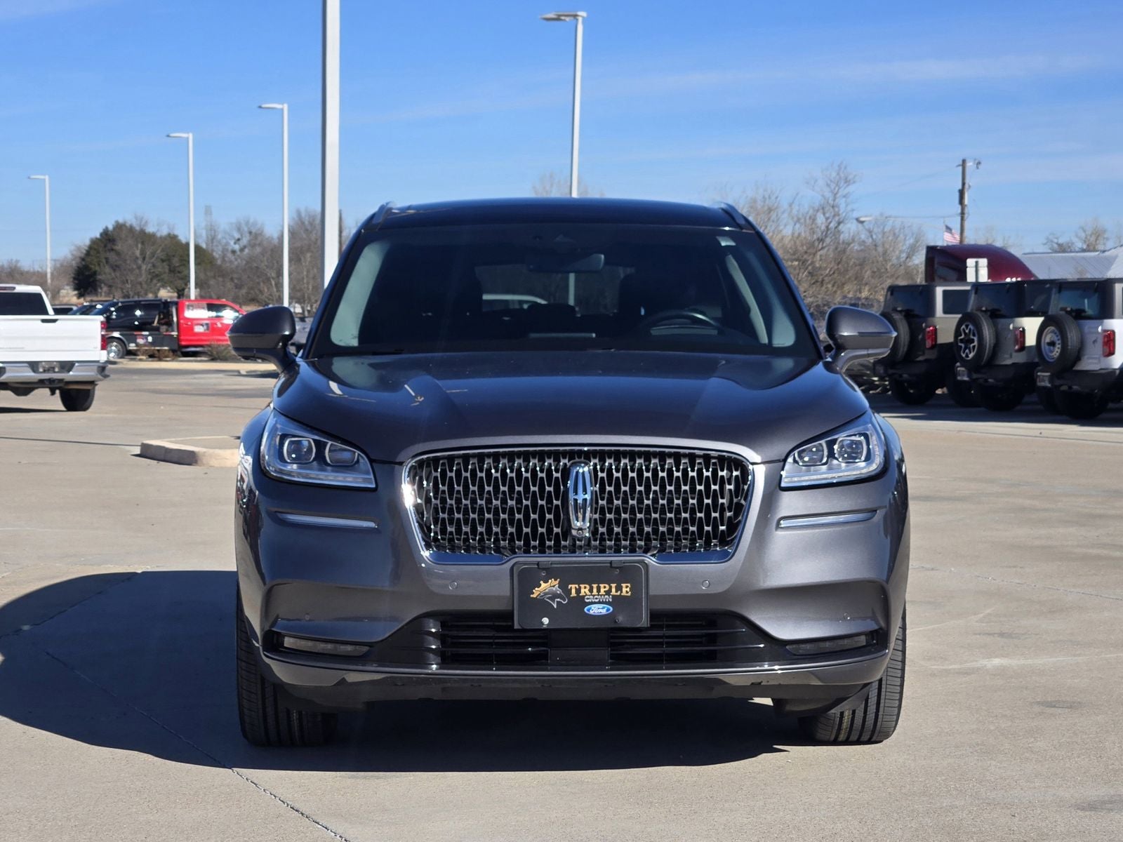 This 2021 Lincoln Corsair comes nicely equipped with Elements Package (Heated Rear Seat, Heated Steering Wheel, Rain Sensing Wipers, and Windshield Wiper De-Icer), Equipment Group 201A, Lincoln Co-Pilot360 Plus Package (360-Degree Camera w/Rear Camera Washer, Active Park Assist Plus, Adaptive Cruise Control w/Traffic Jam Assist, Evasive Steering Assist (ESA), Forward Sensing System, and Reverse Brake Assist), Monochromatic Package - Asher Gray (Body-Color Front & Rear Bumpers, Body-Color Grille, Body-Color Rocker Panel, Monochromatic Badging, and Wheels: 20 Black Aluminum), Technology Package (Additional Rear USB Ports (Types A & C), Heads-Up Display, Jeweled LED Headlamps, Lincoln Star Media Bin Light Prem Ambient Lighting, Phone As A Key, and Wireless Charging Pad), 14 Speakers, 19 Bright Machined Aluminum Wheels, 3.81 Axle Ratio, 4-Wheel Disc Brakes, ABS brakes, Air Conditioning, Alloy wheels, AM/FM radio: SiriusXM, Auto High-beam Headlights, Auto tilt-away steering wheel, Auto-dimming door mirrors, Auto-dimming Rear-View mirror, Automatic temperature control, Brake assist, Bumpers: body-color, Compass, Delay-off headlights, Driver door bin, Driver vanity mirror, Dual front impact airbags, Dual front side impact airbags, Electronic Stability Control, Emergency communication system, Four wheel independent suspension, Front anti-roll bar, Front Bucket Seats, Front Center Armrest, Front dual zone A/C, Front fog lights, Front reading lights, Fully automatic headlights, Garage door transmitter, Heated door mirrors, Heated front seats, Illuminated entry, Knee airbag, Leather steering wheel, Low tire pressure warning, Memory seat, Navigation System, Occupant sensing airbag, Outside temperature display, Overhead airbag, Overhead console, Panic alarm, Passenger door bin, Passenger vanity mirror, Power door mirrors, Power driver seat, Power Liftgate, Power moonroof: Panoramic Vista Roof, Power passenger seat, Power steering, Power windows, Premium Leather Heated Comfort Seats, Radio data system, Radio: Revel Audio System w/HD Radio & MP3, Rear anti-roll bar, Rear reading lights, Rear seat center armrest, Rear window defroster, Rear window wiper, Remote keyless entry, Security system, SiriusXM Radio, Speed control, Speed-sensing steering, Speed-Sensitive Wipers, Split folding rear seat, Spoiler, Steering wheel memory, Steering wheel mounted A/C controls, Steering wheel mounted audio controls, SYNC 3 Communications & Entertainment System, Tachometer, Telescoping steering wheel, Tilt steering wheel, Traction control, Trip computer, Turn signal indicator mirrors, and Variably intermittent wipers.