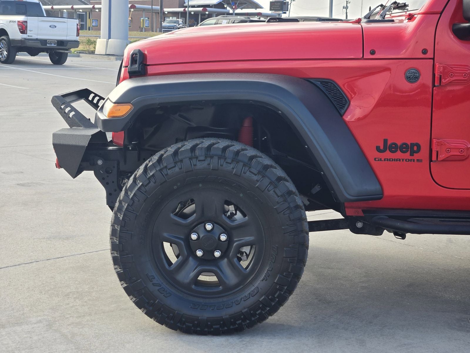 Designed to conquer the great outdoors, the Gladiator Sport comes equipped with a Black 3-Piece Hard Top, Trailer Tow Package, and an Anti-Spin Differential Rear Axle, ensuring you have the tools to tackle any terrain. The Firecracker Red Clearcoat exterior and MOPAR Satin Black Grille add a touch of rugged style, while the MOPAR All-Weather Slush Mats provide practical protection for your adventures.