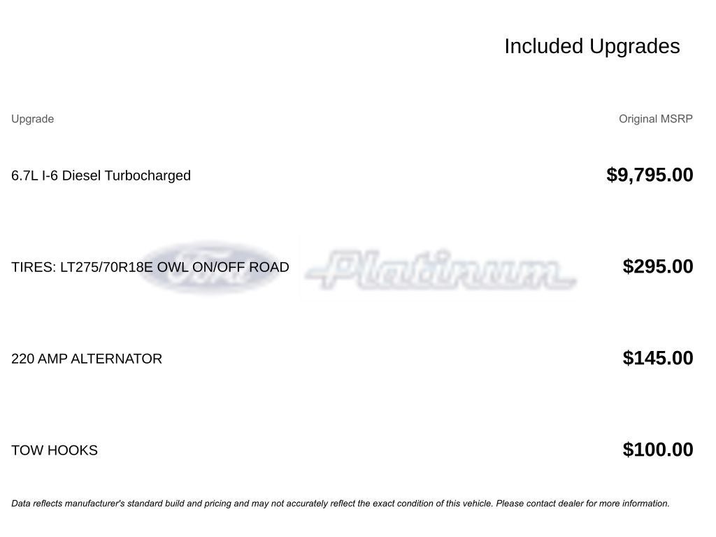 - Cummins 6.7L I6 Turbodiesel engine
